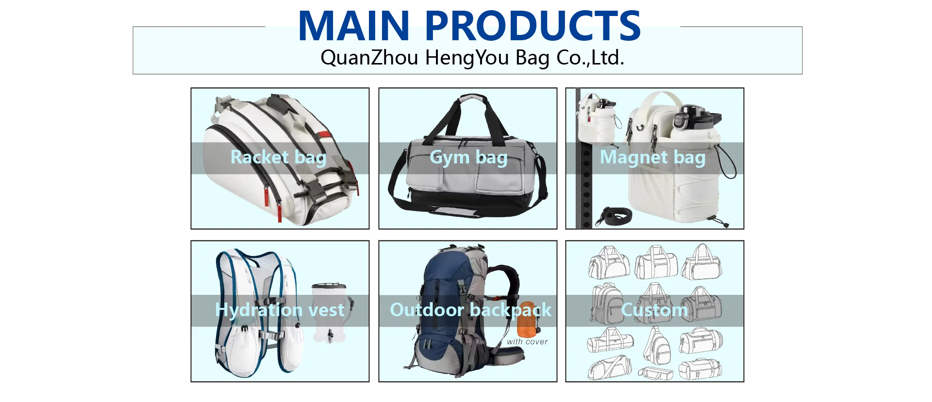 Productos principales:Mochila, Bolsa de viaje, Bolsa de senderismo, Bolsa térmica, Riñonera